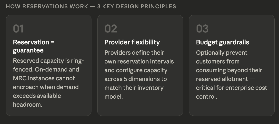 That last point is particularly powerful. If you offer two different VM SKUs backed by the same GPU type, a customer can hold a single reservation and draw capacity across both giving them operational flexibility without requiring multiple contracts.