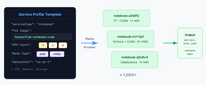 The difficulty isn't just creating one notebook. It's doing it at scale, in parallel, with GPU-aware scheduling, capacity management, and per-user isolation — all without overwhelming the underlying infrastructure.