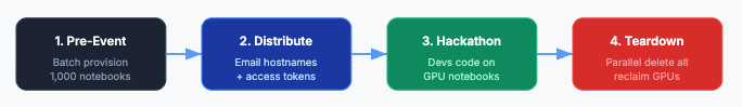 Running a hackathon is hard. Running a GPU-powered hackathon for thousands of participants, where every developer needs a fully configured environment (notebooks, developer pod etc) with dedicated GPU resources, ready to go the moment the event kicks off, is an entirely different class of problem.