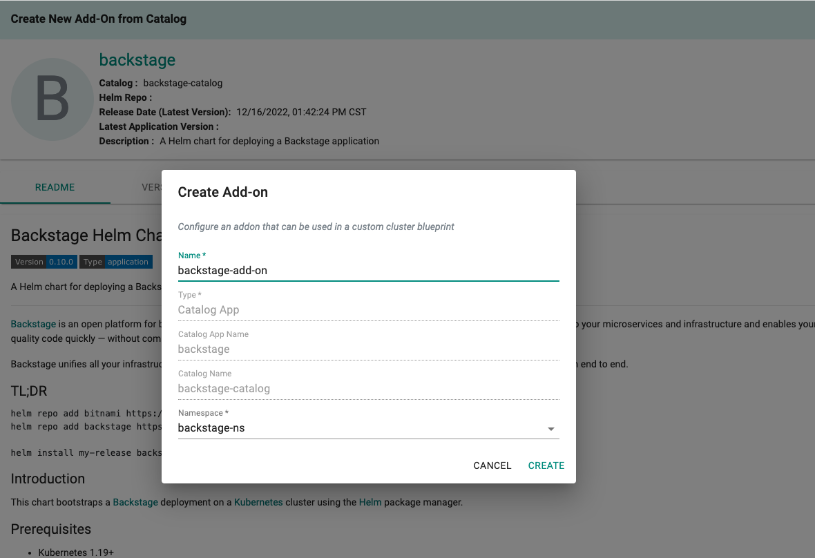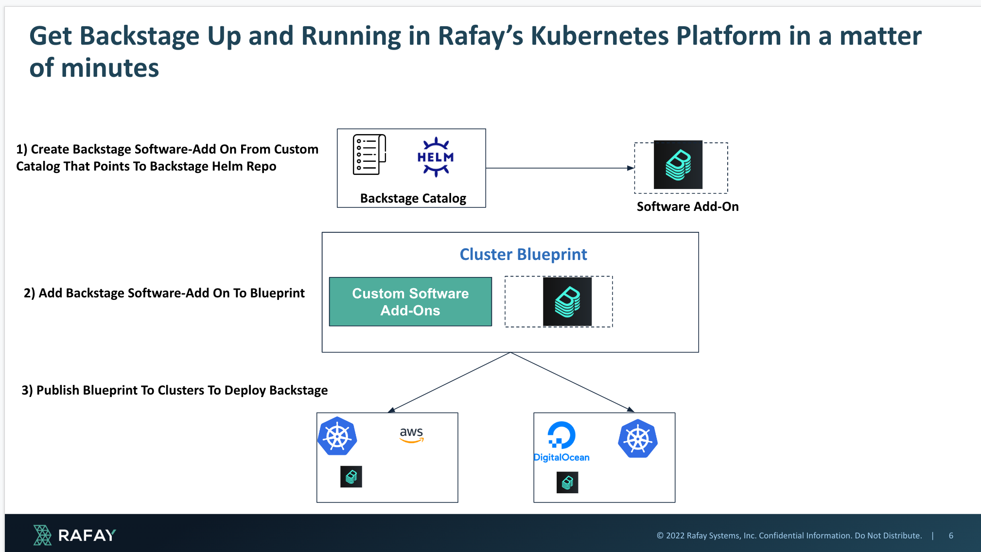 Then put that Backstage software add-on as part of a cluster blueprint so that it can be a part of your default cluster set-up and provisioning. Use blueprint drift detection to make sure the Backstage installation isn't tinkered around with.