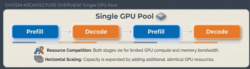 So, when prefill and decode run on the same GPU, they compete for the same resources. A compute-heavy prefill job can stall the decode of an already-in-progress response, increasing time-per-output-token (TPOT) and degrading the user experience. Scaling this model means adding more identical GPUs, regardless of whether the bottleneck is compute or memory—a costly and inefficient approach.
