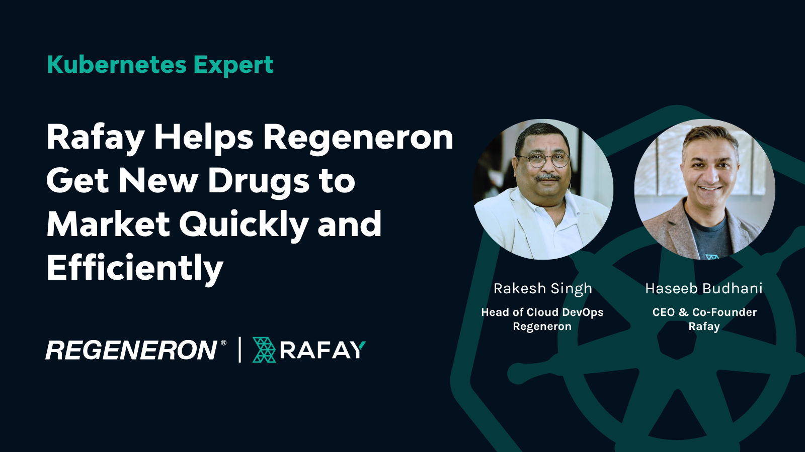 Regeneron is a great use case for Rafay. It's so tangible: life sciences. We all get that. Especially coming out of the pandemic.What do you tell customers the top three differentiators of Rafay are, and why they should use Rafay on top of EKS?Haseeb: We have some pretty cool features in our product. We have access management and zero-trust models and cluster provisioning. All these are very nice things, but it always comes down to exactly the same thing: every large enterprise started their journey independent of Rafay because they didn't know who we were. Last year we were a young company, now we are a larger company. But all these firms are basically building towards a roadmap which Rafay truly understands.In my opinion, and I'm confident when I say this; we understand their journey better than any other company in the market.The reason why we have the flurry of customers we have, and the product has the capacity that it does, is because we have complete clarity on what a pharmaceutical company or a financial customer’s company or a high-tech company’s journey to the cloud and automation for modern infrastructure will look like.There are a lot of great answers for the “what.” What do we do? Regeneron doesn't care, right? They are trying to solve a bigger problem. They are trying to get their researchers to go faster. So when they want to run a model, they should be able to do it right now. They look for a tool to solve the business problem. We figured out how to have that conversation and explain why Rafay helps multiply the bandwidth they have in their organization.To that end, we have some great technology, but that's a secondary issue. The why is more important than the what. This is the important thing: Every enterprise is on exactly the same journey, and if you think about it from a purely economic efficiency perspective, that is not a good investment for our industry. If everybody's solving the same problem, that's a waste of resources. What is the point of the cloud? We all used to build data centers. That was not efficient. We all went to the cloud because it's more efficient to have somebody else like AWS solve this problem for us, so we can now focus on the next level problem. Rafay is solving that problem so that Rakesh and Regeneron can focus on drug discovery, not on Kubernetes.Rakesh: That's correct. It's all about efficiency, right? Doing things, learning from each other's experience and building upon it. So these things have been solved.From an infrastructure perspective, what's next on your journey?Rakesh: Right now, the roadmap we have is making sure that the workloads are running more efficiently, and are more secure. As we go into these expandable serverless technologies, there are more challenging opportunities for us to solve. We need to make sure that with the world order we are living in, we are doing more securely what we were doing previously. Our roadmap is to leverage the power of cloud in doing more things on demand. We are invested in multiple cloud platforms and are looking forward to leveraging a technology that is truly cloud-native and on which we can leverage things together.If you had a bumper sticker, what would it say about Regeneron as a technology company that's delivering therapeutics?Rakesh: The bumper sticker would say "Discovering new drugs. Quickly and efficiently."If you had a billboard on Highway 101 in Redwood City about Rafay and what it's enabling organizations and enterprises across the globe to achieve, what would it say?Haseeb: Our customers call us the “vCenter for Kubernetes”, and we all know what vCenter is. We all know why vCenter is so amazingly successful: because it takes IT engineers and gives them superpowers. You can run a data center. What is the vCenter for this new world? It's us.Rafay’s customers call us the vCenter of Kubernetes. That's an incredible moniker because it truly codifies the roadmap. It codifies what we are delivering today.Everyone benefits from new drugs being available more quickly and more efficiently. The development environment of Kubernetes, with the addition of Rafay, gives Regeneron a significant advantage in making those drugs come to market when the world needs them. Rafay is a differentiator in the Kubernetes world, delivering a powerful platform to help make that happen.