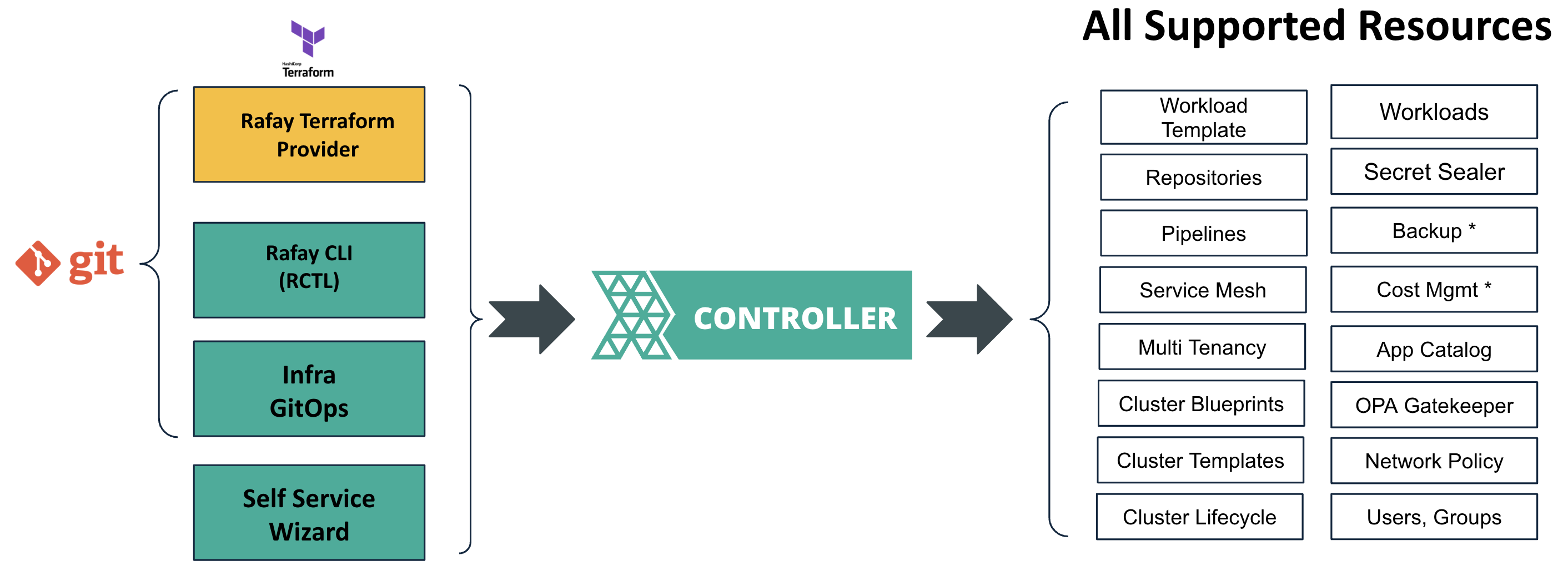 Customers can interface with the Rafay Kubernetes Operations Platform via multiple approaches: