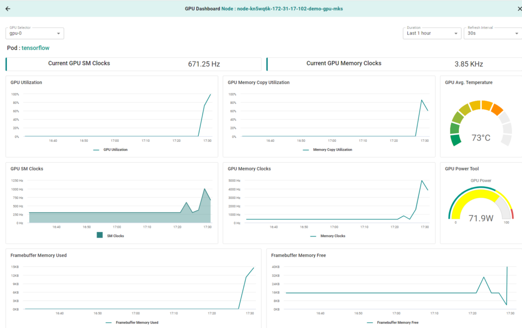 Here is an example of the integrated GPU metrics dashboard that users are presented with.