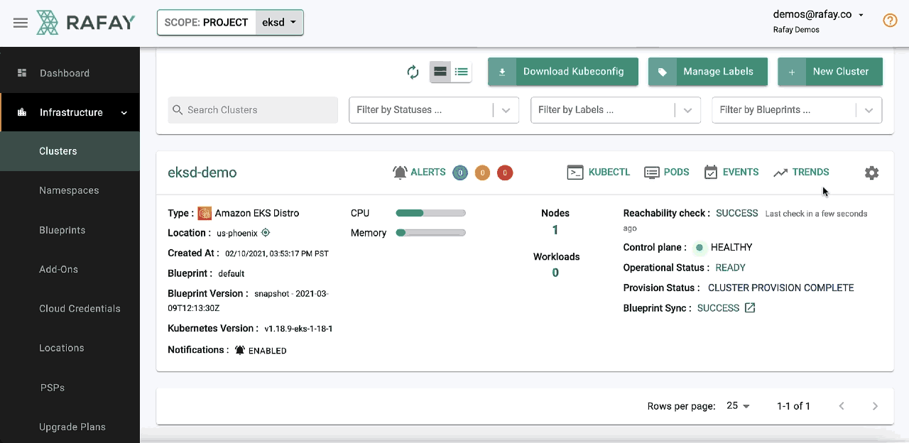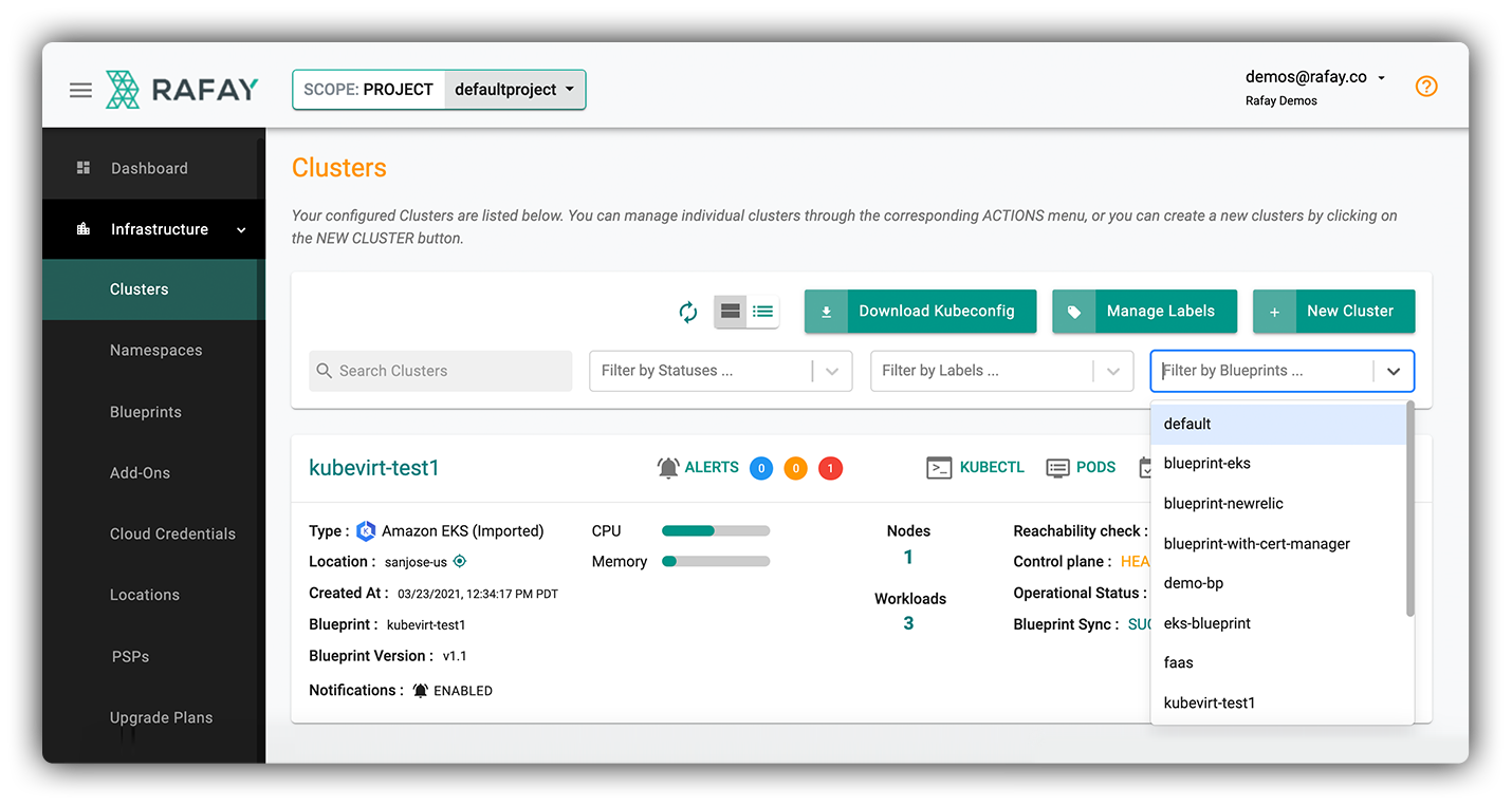 See for yourself how to deploy Kubernetes faster, reduce security & operational risk, and control the total cost of Kubernetes operations by trying the cloud-based Rafay Kubernetes Operations Platform!