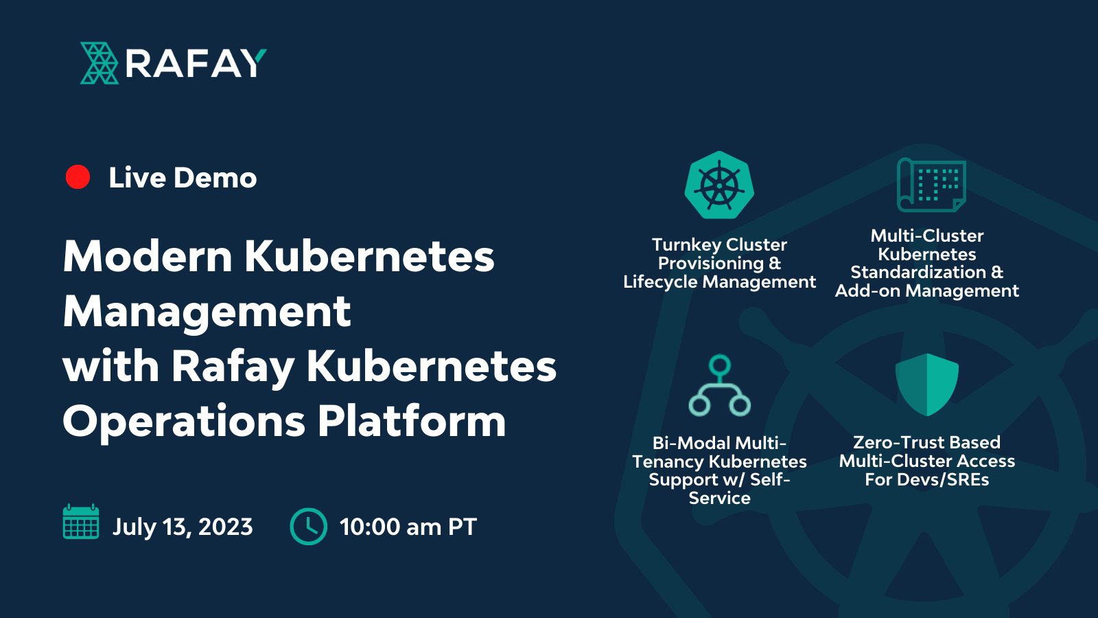 Rafay delivers infrastructure orchestration and workflow automation to support enterprise-grade Kubernetes operations– enabling companies to deploy and operate clusters and modern applications across data centers, public clouds, and edge environments.